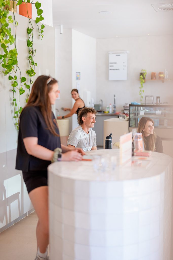 Beyond the studios, members can recharge in the red light therapy zone, refuel at the in-house café (locally sourced produce, every cup and plate supporting the community), and use the comfortable communal spaces to read, work or simply slow down.